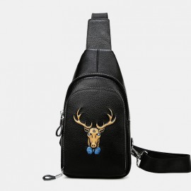 Men Genuine Leather Casual Outdoor Embossed Pattern Wear-resistance Chest Bag Shoulder Bag