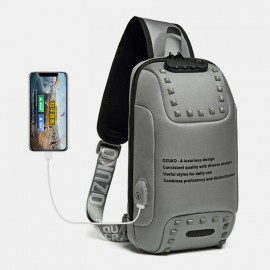 Men Oxford Anti-theft Code Lock Design Waterproof Chest Bag Large Capacity USB Charging Multifunction Crossbody Bag Shoulder Bag