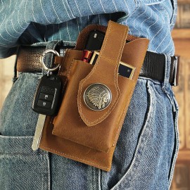 Men Retro Double Layer 6.3 Inch Phone Bag Waist Bag Matte Soft First Layer Cowhide Belt Bag